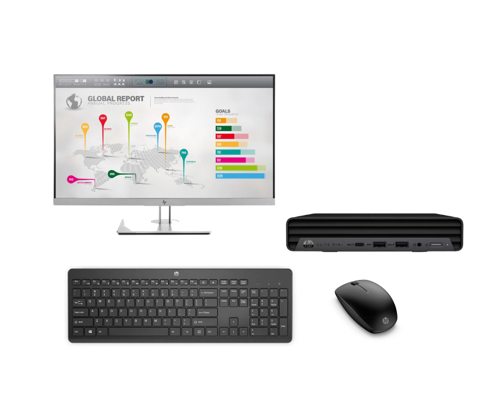 Signa upp här!Kontorspaket HP Elitedesk Mini 800 G9 i5-12400, Skärm, Tangentbord och Mus