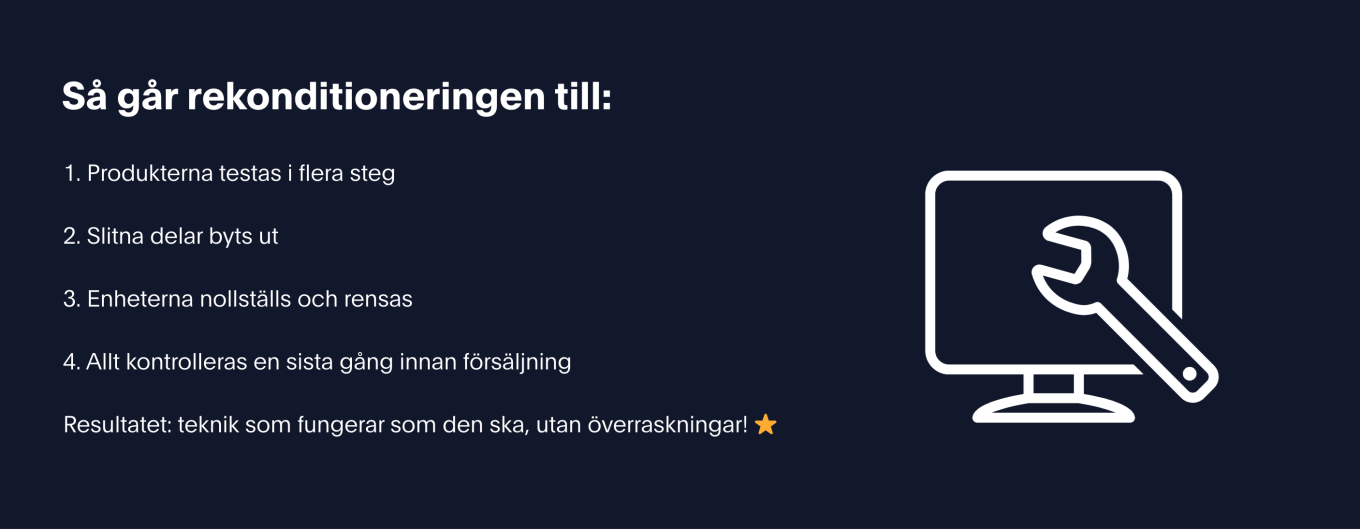 Är rekonditionerade produkter lika bra som nya? Ja, du får samma funktion. Skillnaden är att du slipper nypriset och gör ett mer hållbart val.